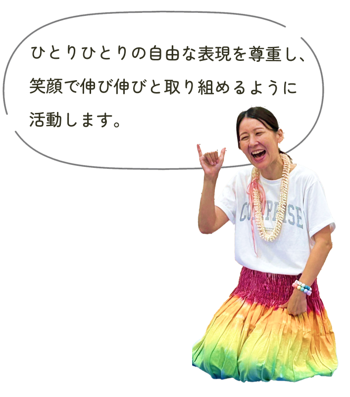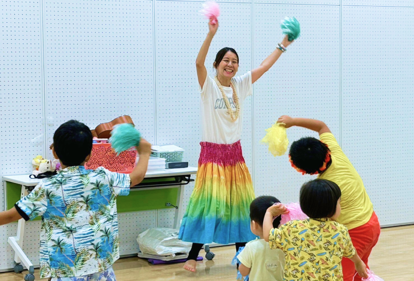 ハワイアン音楽や、ウクレレに合わせて、歌ったり、踊ったり、リズム遊びや表現遊びをして楽しみます。